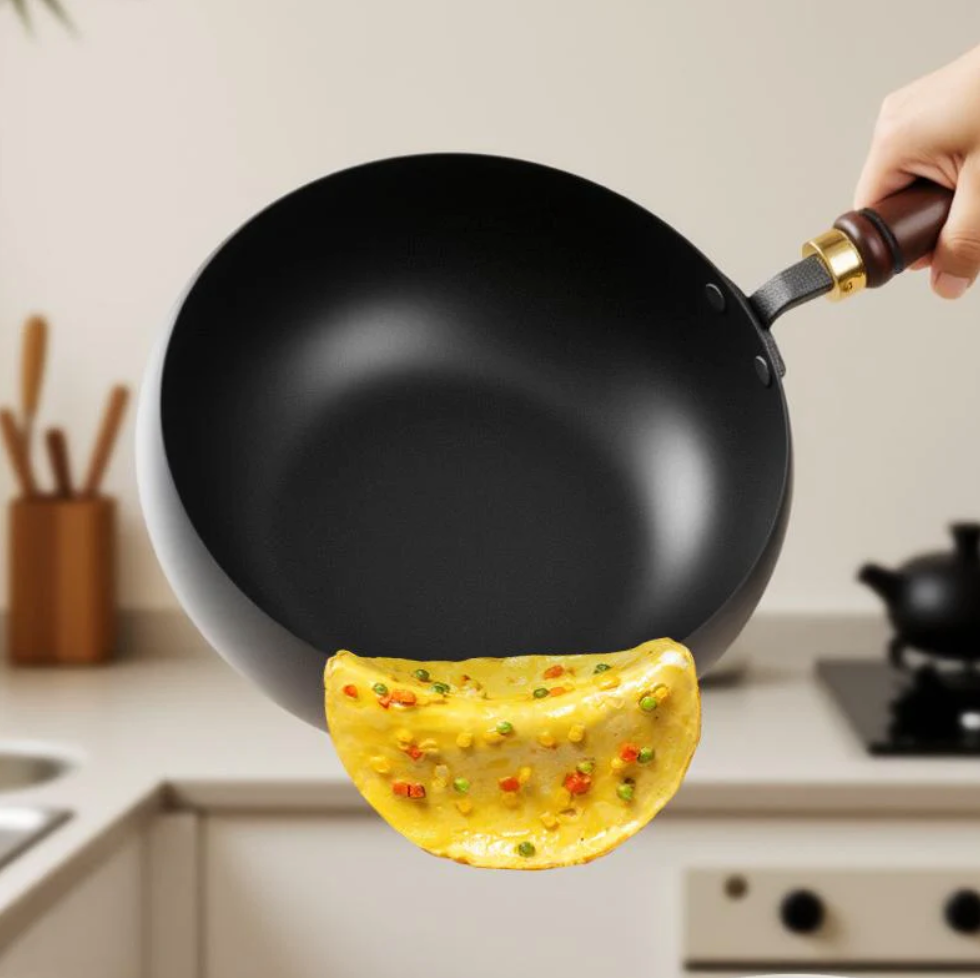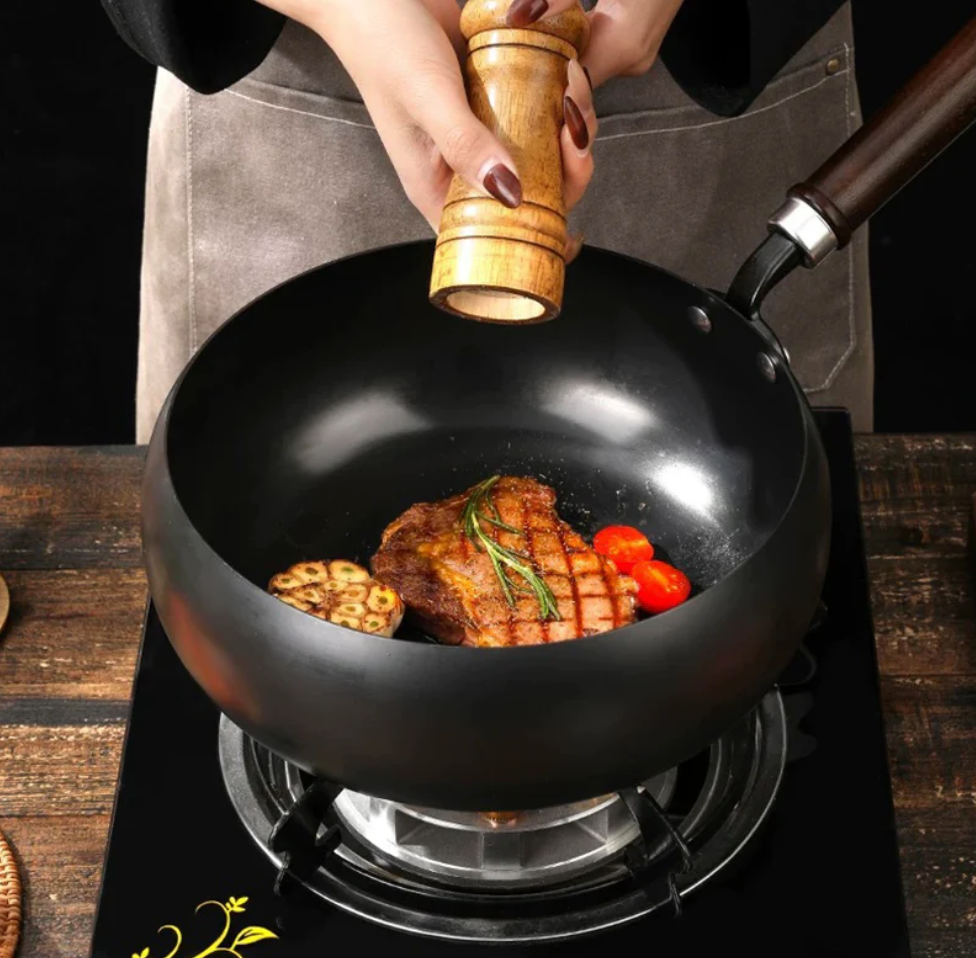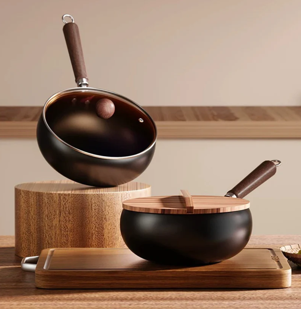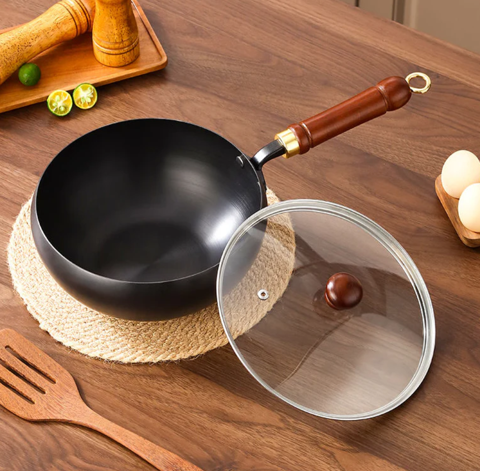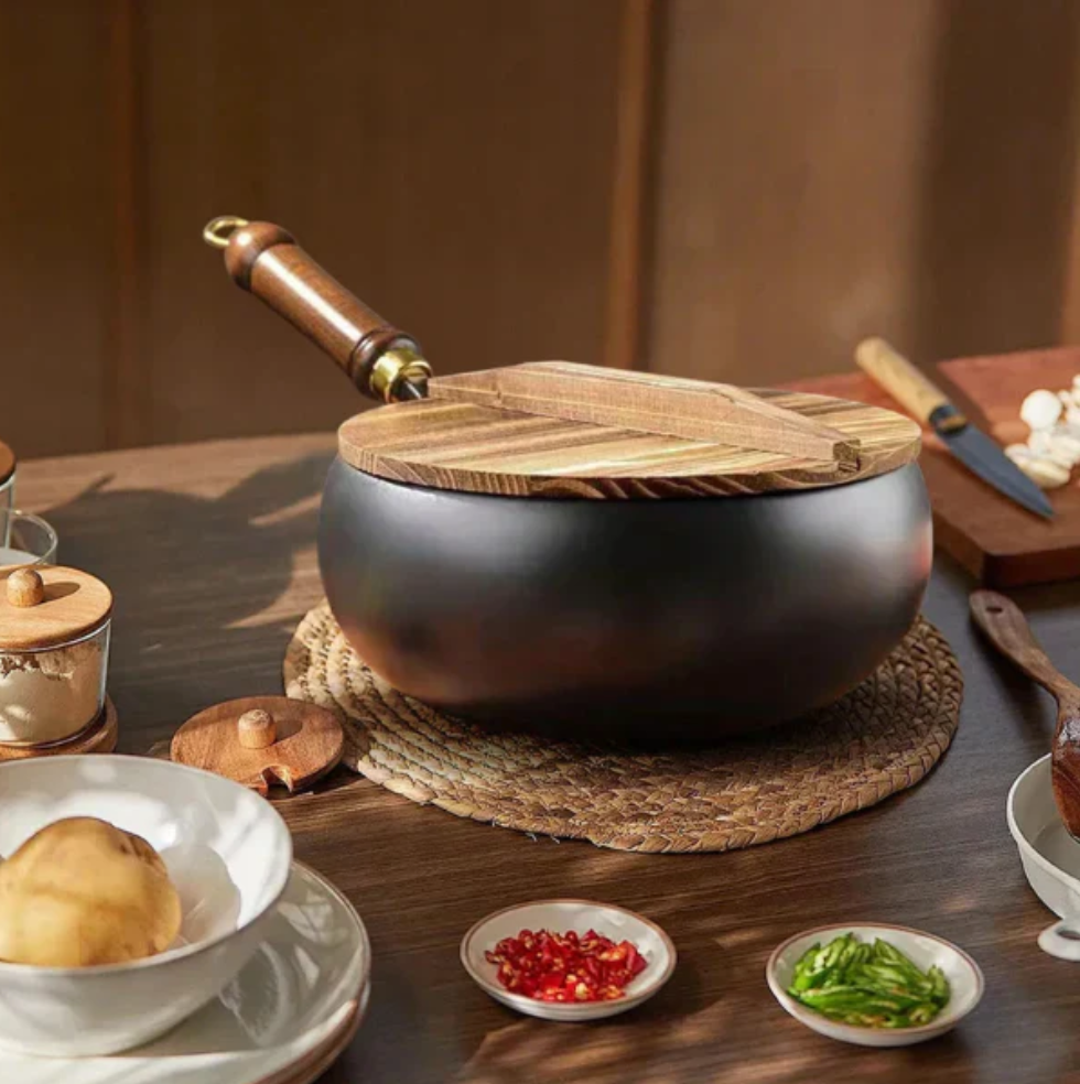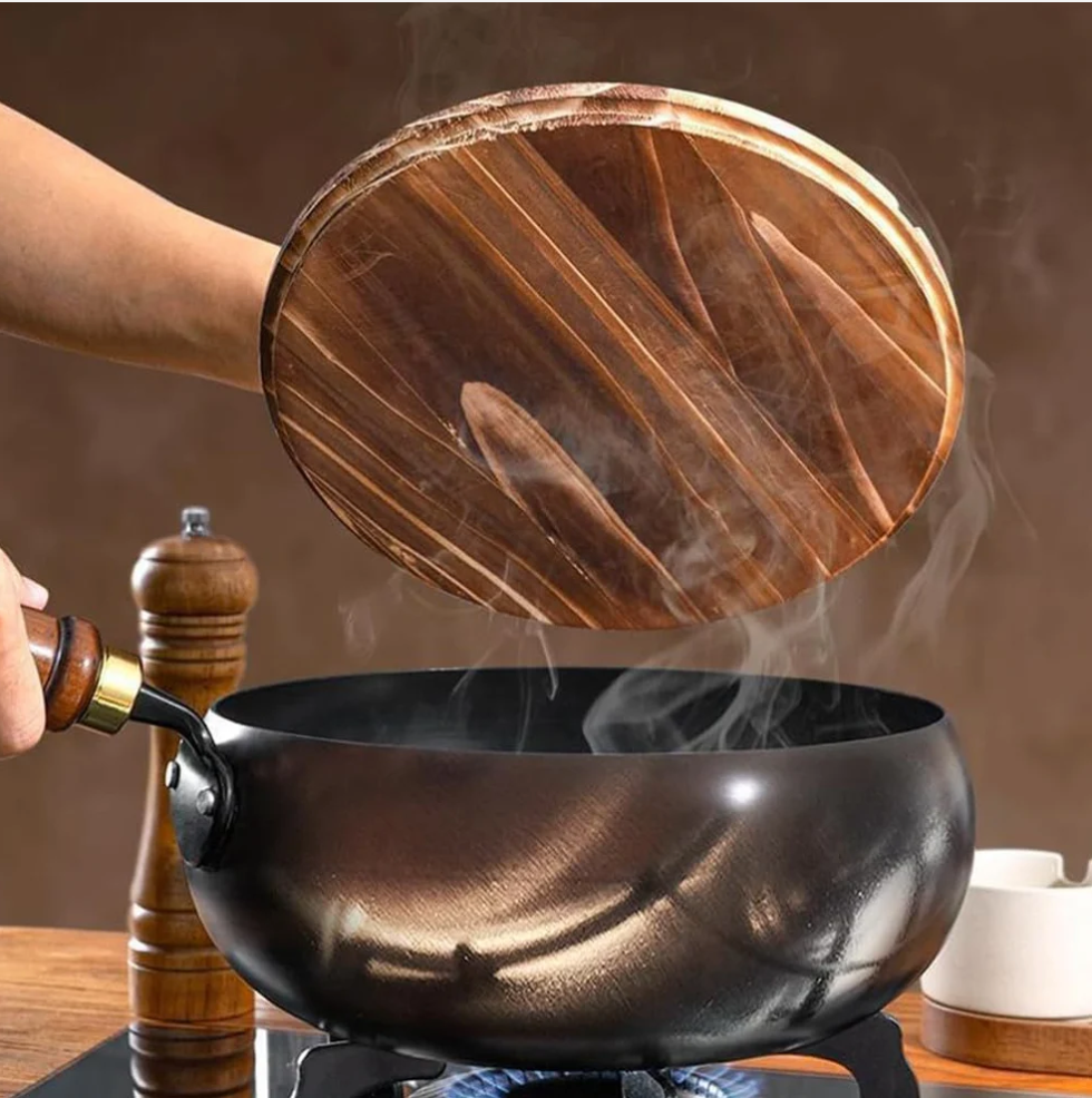 Det ergonomiska trähandtaget håller sig svalt och gör matlagningen både bekväm och säker – samtidigt som det tillför en tidlös design till köket.
