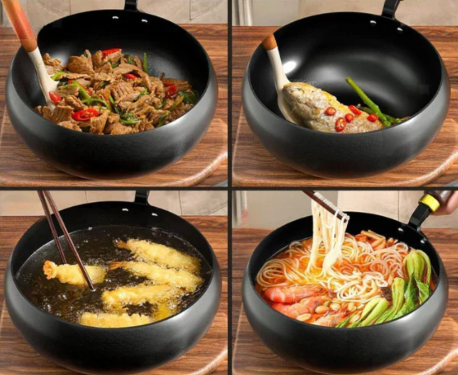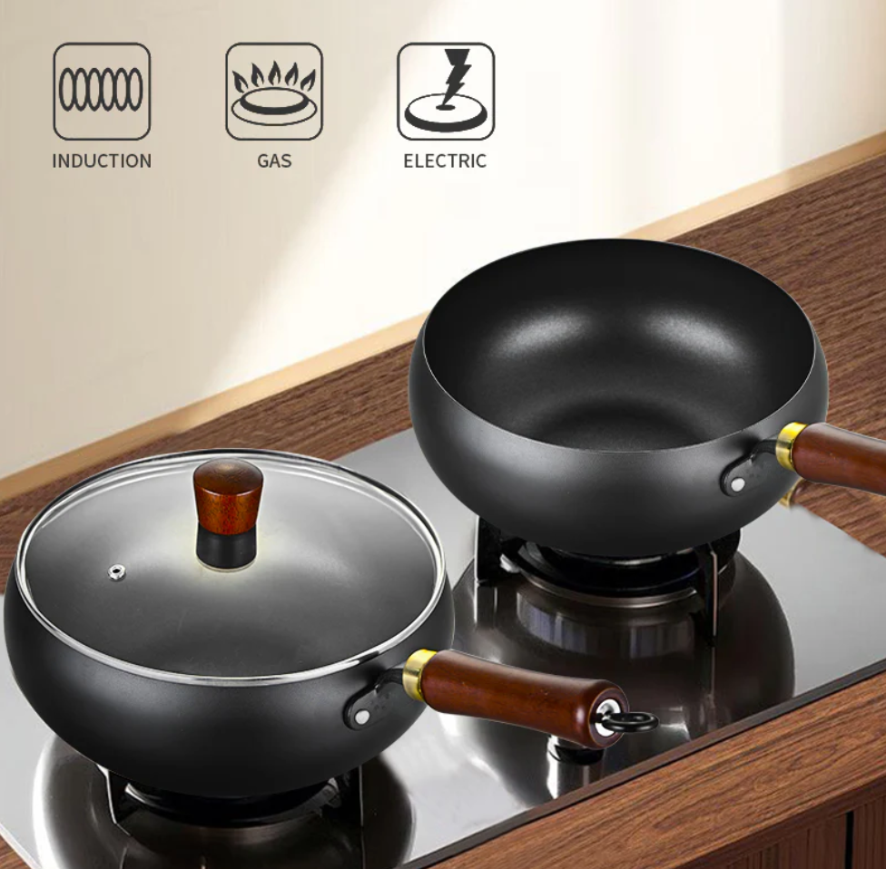 Den extra djupa formen minskar stänk och ger plats för allt från äggröra och pannkakor till kött, wok och mustiga grytor. Pannan värms snabbt, sparar energi och fungerar på alla spisar – gas, induktion, keramik och el.