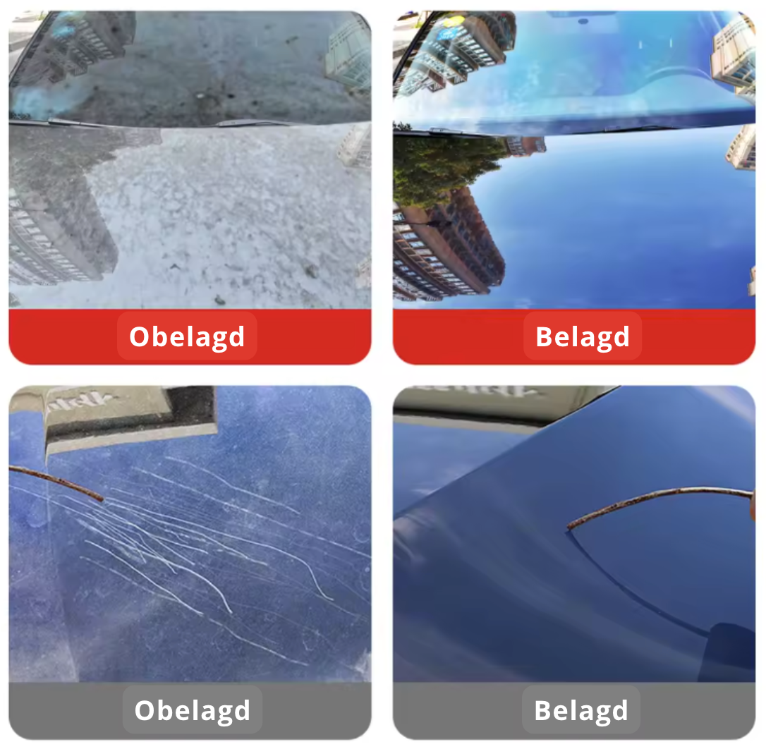 Beläggningen ger en hård yta som kan minska repor och gör att vatten och smuts glider av. Med korrekt applicering kan ett kit räcka för att behandla hela bilen.